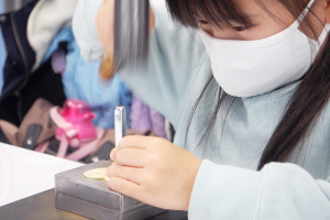 好きな形の真鍮プレートに、自分でデザインした図面通りにハンマーを使って彫っていきます。図面(デザイン画)を描くところからはじまり、それを具現化する、彫金師の仕事の一連の流れが体験できます。